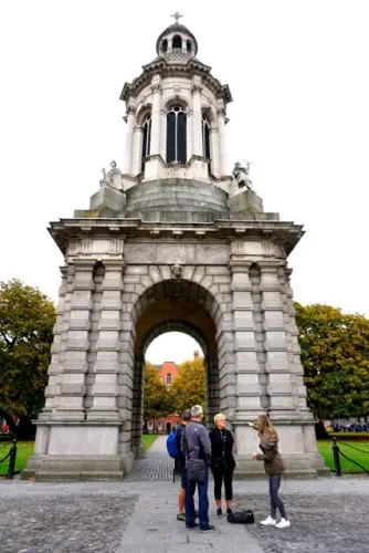 Walking on cobbled paths we stop at the entrance to the Trinity College Library and the entrance to the famous Book of Kells. Jessica explains we will not have time to stop to see the four gospels created by Columban monks in 800 AD, however takes the time to explain what we should see if we return on our own.