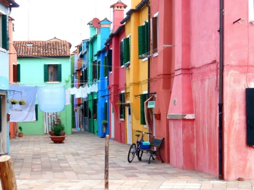 One of the main draws to Burano are the brilliant colors of the buildings of Burano reflecting in the green waters. Be sure to bring your camera and did I mention some sunglasses?