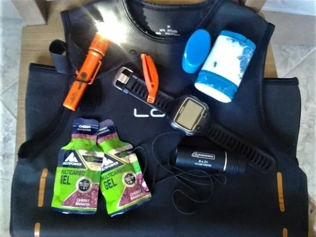 Next up I started carrying an emergency beacon lamp strapped to my arm, plus an extra loud sea whistle. The ultimate would be a GPS tracker unit, but that’s way beyond my budget. However, I was fortunately donated a no-longer-used older model GPS sports watch that, when shoved neatly under my swim cap, provides fairly accurate distance tracking and mapping after the event, and certainly beats my former method of checking out Google Earth on a point-to-point basis.